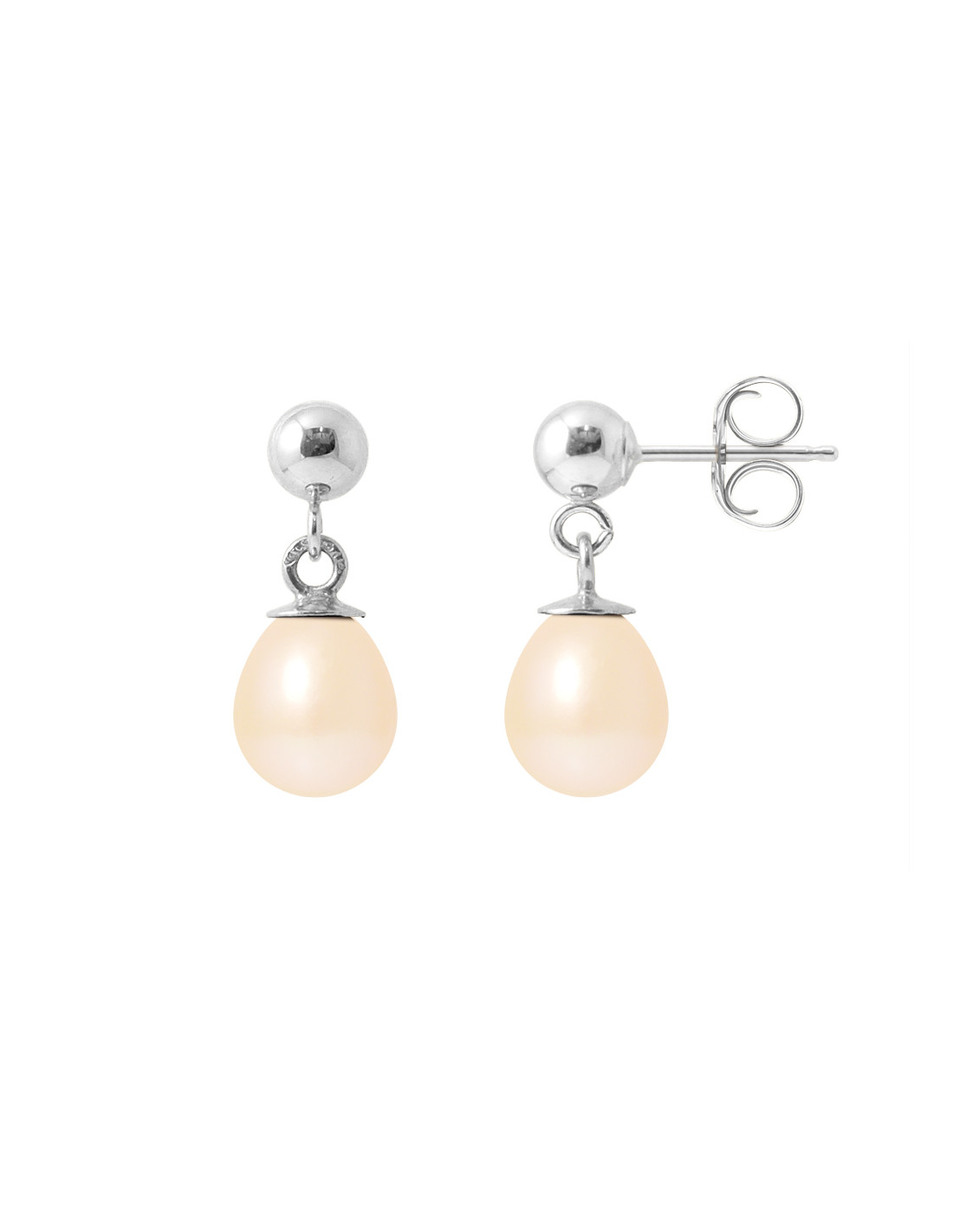 PERLINEA- Boucles d'Oreilles- Perles de Culture d'Eau Douce Poire 6-7  mm Rose- Bijou Femme