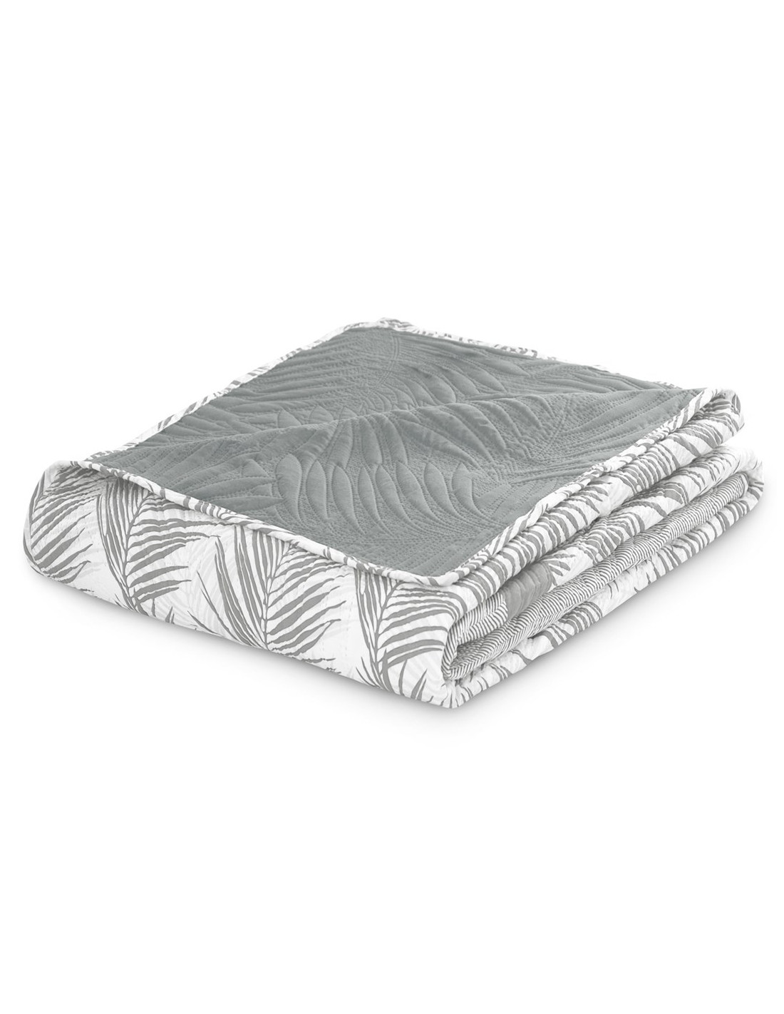 Couvre-lit TROPICAL BONAIRE couleur gris imprimé style moderne 220x240 ameliahome