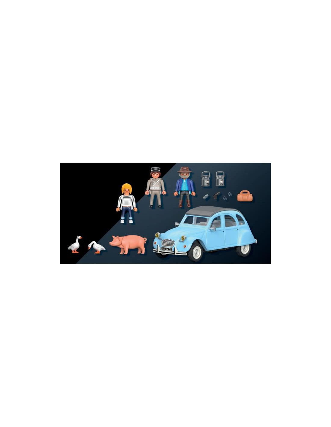 L'emblématique Citroën 2CV des a présent disponible en version Playmobil ! Sillonnez les routes de campagne a bord de cette icône de l'automobile française. Avec son design vintage et ses personnages, l'expérience de jeu risque bien de permettre aux petits et grands une belle remontée dans le temps.